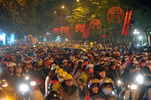 Tối 24/12, hàng chục nghìn người dân Thủ đô đã đổ ra đường dạo chơi Noel. Nhiều tuyến phố quanh khu vực trung tâm tắc nghẽn. Tại TP HCM, bất chấp triều cường dâng cao, người dân vẫn nườm nượp đi đón Giáng sinh.
